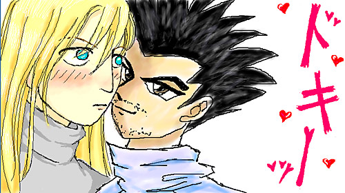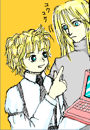 管理人が参加させていただいた、楽しい楽しいお絵描きチャットのログですv ☆2006年7月15日 「LITTLE FLOWER」様(管理人:琳香様)で絵茶 ![]() お題はフリーだったので、G.I金髪碧眼コンビを描いてみました。 リストさんは初描きでドッキドキ リストさん、カイトさんになんてレクチャーしてるんでしょ‥‥なんて、 琳香さんてばなんてナイスキャッチな振りっ ありがとうございますっ(妄想万歳) ももももちろん! 「G.Iのカードの機能はこれで全部です。ジンにおかしなカード使われないように気をつけて。 特にこのホルモンクッキーとかコネクッションとか‥‥あ、あと身重の石もかな」 とか何とか教えてもらちゃってるわけですよ(照) ←ばか この時、琳香さんはアイシールド21のチアガールの女の子と子ジンを描いてらしたんですが‥。 いや、そのシチュに異常〜〜に反応しまくり、萌えまくりました;; 可愛い女の子にジンが捕縛されちゃってんですよっ!! しかもカイトさんを釣るための餌っ!!! 絵茶のノリのシチュ絵ってホントたまらんです。これだから止められないのよ〜v 残念ながら途中で落ちてしまわれたAさんから、後日素敵なジン様(別名黒カイト)を いただいてしまったv わはvv ありがとうございました、大事にしますっ!! ***** 2回戦はジンカイで合作〜デレデレvv ![]() ニヤリ顔でカイトさんの耳元に顔を寄せるジン‥! さぁっ! なんて囁いてるでしょう、Let' thinking time !!!! 「なぁカイト、いいだろ‥?」 ぐはっ ぐは〜〜〜‥‥!!! たまんねぇっ!!(まぁ下品) なにがっ!? ねぇ、何が「いい」のっ!?(うるさい) そんな鬼畜なニヤリ顔で! 精悍な目と無精ひげでっ!! さっすがですよ、琳香さんっ!! 妄想ブラボーーーッ!!! この辺から間違いなく頭がいっちゃってた管理人。(元からゆーな;) もはや異常といっても過言ではないハシャぎっぷり。 なんかだってもぅっ‥!! いやはやまぁまぁ、他様宅で思う存分弾けて参りました; だって萌えたんだもんっ‥! 琳香さん、毎度ご迷惑様でした^^; すごく楽しかったです、ありがとうございましたv →トップ |