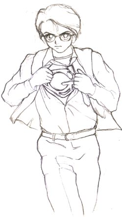 超人ハンターズ 〜ジンカイ的SM〜 ※スーパーマンネタです。知らない方ごめんなさい;; ↓ ↓ ↓ ![]() パ〜パパパパ〜ン パ〜パ〜パ〜ン♪ 一応ジンです。髪型変えたら誰か分からん。 ↓ (その頃のカイトさん) ↓ ![]() お約束のピンチ満喫中 ↓ (2秒後) ↓ ![]() 「お怪我は?」 「oh‥‥Superman‥‥!」 ↓ (さらに2秒後) ↓ ![]() 「それじゃあお嬢さん、気をつけて」 ↓ (その頃のカイトさん) ↓ ![]() 「ありがとう、スーパーマン!」 ‥‥って、なんでやねん! ↓ (その頃のレイザー) ↓ ![]() 似合う‥‥というより、違和感なさ過ぎ。 みんなスーパーマン。 後日ちゃんとペンで描こう‥;; (060910) →トップ |