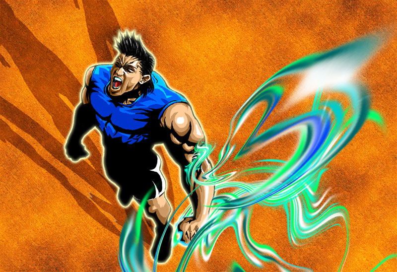 凄い!凄い!凄いっ!!! 凄い迫力だよーー!!このうねり迫り来るオーラ!! 鬼気迫る咆哮が今にも耳に響きそう!! 足を踏みしめる大地もレイザーのオーラに焼かれたような熱の色。ほんと凄い‥! 筋肉のリアルさとかもーあり得ない!強い‥! そして体を包む光はまるで鎧。 どんな拳も体に触れる前に砕けそう。 レイザー、カッコいいよ‥‥!!! 相手はジンか、はたまたカイトさん‥‥。 こんな男に勝てる奴が果たしているのか!? レイザーとカイトさんはG.Iで一戦交えていた!というご意見、とてもとても同意なのです。 しかしカイトさん、このド迫力の男を相手に大丈夫なのか‥‥!? ⇒NEXT! レイザーvsカイトさん、ガチンコ勝負絵!! (050423) |