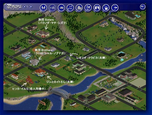 『シムピープル!』は、アメリカで作られた人生シュミレーションゲームです。 ゲーム内に登場する人間たち(シム、シム人などと呼びます)を操作して、遊んだり働いたり、ケンカしたり恋愛したり、結婚したり出世して大金持ちにしたりします。男同士でも恋愛できますし、恋愛して同居したら(家族になったら)出産は無理ですが養子をもらうことも出来ます。 そしてこのゲームの最大の(と、管理人は思っている)醍醐味は、人体を形作るポリゴンデータ(メッシュ)と服などの画像データ(スキン)を用意すれば好きキャラでプレイできるということです。 もちろん管理人は張り切ってジンとカイトさんのキャラを用意しました。あんま似てないけどさ; ![]() カイトさん ![]() ![]() ジン 服違いで2バージョン 数々の二次創作同人サイト様より、ハンタを初め、いろんな版権キャラのスキンが無料で配布されています。管理人も大変にお世話になりました。 「カイトさんのシムピープル日記」のINDEXにリンクがあります。 それでは、ちょこっとゲームのシステムというかルールをご説明します。(あまり上手く説明できてないですが;) まずゲームを始めると、↓の『ご近所画面』になります。文字と矢印は管理人が付け足しました。 『家族』の構成を決め、顔や体、服装、性格の設定をした後、家を選んで引越しさせます。独身の一人暮らしでも『家族』と呼びます。『家族』は家の数だけ作成できるので、同じ近所内にカイトさんの双子を住まわせることも出来ちゃいます。 また『ご近所画面』も7〜8つあるので、別のご近所画面で第二のカイトさんの人生を楽しむこともできます。 ![]() いろんなハンタキャラを配布サイト様からDLして、家族に仕立ててそれぞれの家に住まわせました。ジン・カイトは残念ながら配布されていなかったので、改造OKのサイト様からスキンをDLして、自分で改造しました。メッシュの作成改造は難しいようですが、スキンはPCで絵を描かれる方なら割と抵抗なくできると思います。 この図では、すでにジンとカイトは同じ家に住んでますが、初めは二人を『家族』にはせず、あえて別々の家に住まわせました。愛の過程を楽しみたかったのでw プレイしたい家(家族)を選ぶと、そのシムの家の画面になります。初めは生活に必要な家具とかは全然ないので買い揃えます。 お金は本来働いて稼ぎますが、裏技(チート)を使えば手軽にお金持ちになれます。このチートについては最後に説明します。 ちなみに↓はカイトさんの家。 ![]() カイトさんでプレイしている時は、ずっとカイトさんの家の中(庭含む)でプレイします。 カイトさんはお買い物やバケーションの時以外は家から出ず、電話を使って近所の人を招待したり、勝手に近所の人が遊びにきたりします。 「誰それを招待する」と名指しで招待することも出来ます。(時間帯や仲が悪かったりすると断わられます) また電話のない家の人を招待することはできないので、交流させたい相手のキャラの家には(そのキャラでプレイする予定はなくても)電話だけは置くようにします。 プレイヤーは基本的に『家族』単位でシム人を操作します。 遊びに来た近所の人の操作は出来ないので、カイトさんの家にジンが遊びに来てもジンの操作は出来ません。カイトさんがジンをどう思ってるかは分かっても、ジンの気持ちは分かりません。 ジンを操作したい時は、一度『ご近所画面』に行って、操作したい『家族』を切り替えます。 そうすると今度は、ジンの家に画面が切り替わり、カイトさんの操作は出来なくなります。 ジン(その時プレイしているキャラ)がカイトさん(遊びに来てる相手キャラ)に結婚(同居)を申し込み、OKとなると、カイトさんがジンの家に引っ越して、二人は『家族』になります。(かなりラブ度を上げる必要があります) カイトさんの家に二人を住まわせたい時は、カイトさんでプレイしてる時にジンに結婚を申し込みます。 『家族』になると、二人の操作がほぼ同時に出来るようになります。 以上です。また日記が進行して必要を感じたら書き足す予定ですv ■お金を増やす裏技(チート)について 公式認定というか、別に秘密でもないようなので書いておきますね。 「Ctrl+SIft+c」で、文字入力欄が現れます。そこに、 「rosebud」と入力してEnterを押します。すると所持金が1,000シムオリオン増えます。 次にもう一度、「Ctrl+SIft+c」で文字入力欄を出し、今度は 「!;!;!;!;‥‥‥」とずーーーっと入力します。「!;」は、前回のチート操作を繰り返すというチートです。 いいだけ打った後、Enter。これでお金がいっぱい増えます。 お金を増やす以外にもチートは色々あるようですが、私がよく使うのはこれだけです。 色んなサイト様でチートの紹介をされているので、ご参考にしてください。 (050321) →シム日記INDEXへ戻る →トップ |